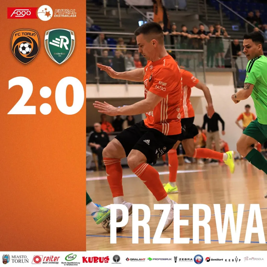 Już dziewięć sekund później torunianie ponownie prowadzili różnicą dwóch bramek, a do siatki Rekordu trafił Dmytro Fedyk. 3:1 dla FC.
