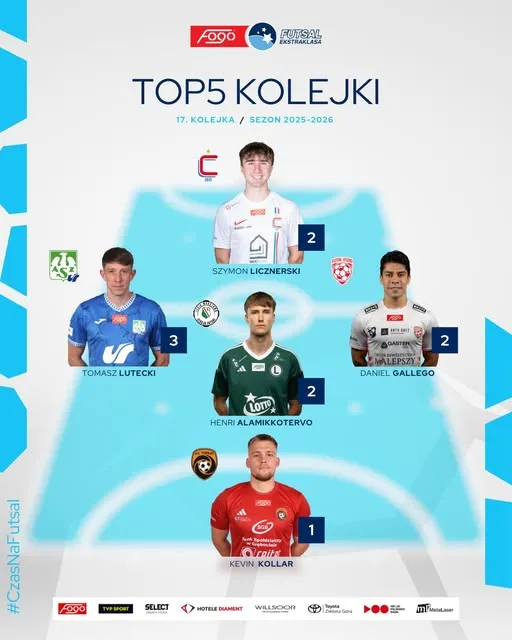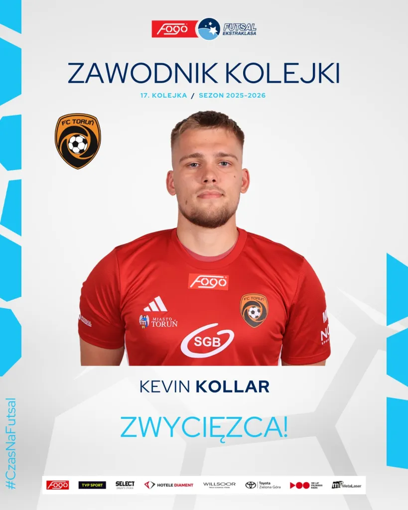 Kevin Kollár najlepszym zawodnikiem 17 kolejki FOGO Futsal Ekstraklasy! Wyboru dokonali kibice, a nam trudno się z tym nie zgodzić.